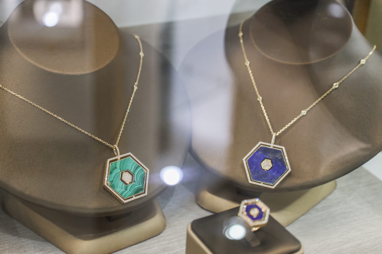 وأعربت عدد من المصممات الإماراتيات المشاركات ضمن منصة “صاغة الإماراتيين” عن شكرهن وتقديرهن لغرفة الشارقة ولمركز إكسبو الشارقة على هذا الدعم الذي يحظين به والتسهيلات المقدمة لهن ولأعضاء المنصة ككل، مؤكدات أن المعرض يمثل بالنسبة لهن فرصة سنوية لاستكشاف ما يشهده عالم الذهب المجوهرات من خلال المشاركة جنبا إلى جنب مع كبار المصممين ودور المجوهرات العالمية التي تشارك بالحدث، حيث أشارت المصممة عبير الربيدي صاحبة مشروع عبالي للمجوهرات، وإحدى أعضاء المنصة التي تشارك في المعرض منذ الدورة الأولى له إلى أنها تركز في تصميماتها على إبراز جماليات الخط العربي وتجسيدها في الحلي والمجوهرات التي تقدمها مؤكدة أن  مشروعها يشهد إقبال كبير من زوار المعرض، ومن أبرز القطع التي كشفت عنها خلال الحدث قلادة الدار وهي مستوحاة من شكل الدار الإماراتي القديم الذي يضم النقوش العربية فضلا عن احتوائها على رسالة موجهة للأم كونها الدار الذي يحتضننا جميعا وهي الأمان وكل ما يسكن الفؤاد، أما هاجر سامرائي التي تشارك للمرة الثالثة في المعرض، فقد حرصت على تقديم تشكيلات مستوحاة من تراث الإمارات والخيل العربي الأصيل، من خلال الدمج بين الذهب والأحجار الكريمة بطريقة مختلفة ويتم ارتدائها بأكثر من أسلوب، في حين قدمت المصممة ظبية الفلاحي تصاميم مبتكرة من القلادات التي دمجت فيها أكثر من 30 نوع من الأحجار الكريمة، فضلا عن تقديم تصاميم مشغولة يدويا وتعكس التراث الإماراتي الأصيل.
