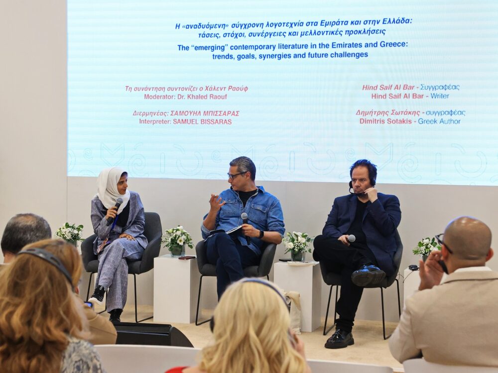 نظمت “هيئة الشارقة للكتاب” جلسة حوارية بعنوان “الأدب المعاصر في الإمارات واليونان: الاتجاهات والأهداف وتحديات المستقبل”، استضافت الكاتبة الإماراتية هند سيف البار، والكاتب اليوناني ذيميتريس سوتاكيس، وأدارها الدكتور خالد رؤؤف، لمناقشة اتجاهات أدب الشباب المعاصر في كلٍّ من دولة الإمارات العربية المتحدة، واليونان، والأهداف العامة التي يسعى إلى تحقيقها، إلى جانب الإضاءة على أبرز التحديات المستقبلية التي سيواجهها في ظل التطور الذي يشهده العالم، وسبل التغلب على تلك التحديات.