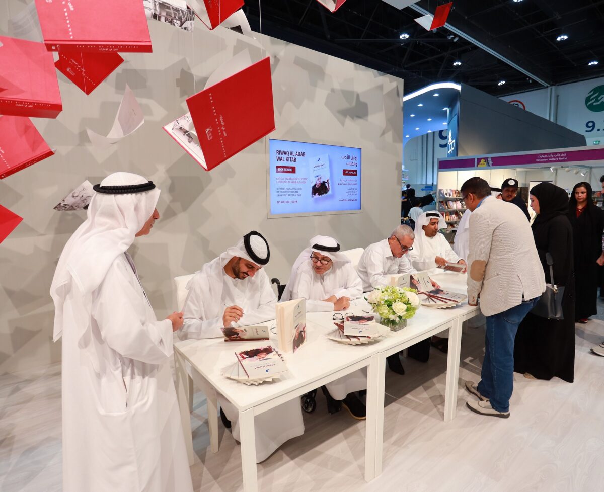 وتقدّم مبادرة “رواق الأدب والكتاب” هذا العام، ثمانية إصدارات أدبية، كما تقدم خمس ندوات حوارية، وحفلات توقيع كتب للأدباء والشعراء، ضمن برنامجها الثقافي في معرض أبوظبي الدولي للكتاب تحت عنوان “من الهواء والماء والرمل نتشكل” احتفاءً بالمنجز الثقافي والتجربة الأدبية العريقة لشيخ الروائيين الإماراتيين الأديب علي أبو الريش بمشاركة عدد من الأدباء والشعراء والكتّاب من الإمارات والوطن العربي، وبالشراكة مع اتحاد كتّاب وأدباء الإمارات، ودار نبطي للنشر، ودار الظبي للنشر، ودار نينوى، ومنشورات المتوسط. كما تعرض الموقع الإلكتروني لمنصة “أصوات أدبية”، وتطبيق مبادرة مكتبة عرب كاست للكتب الصوتية، وذلك ضمن جناح مجموعة أبوظبي للثقافة والفنون.