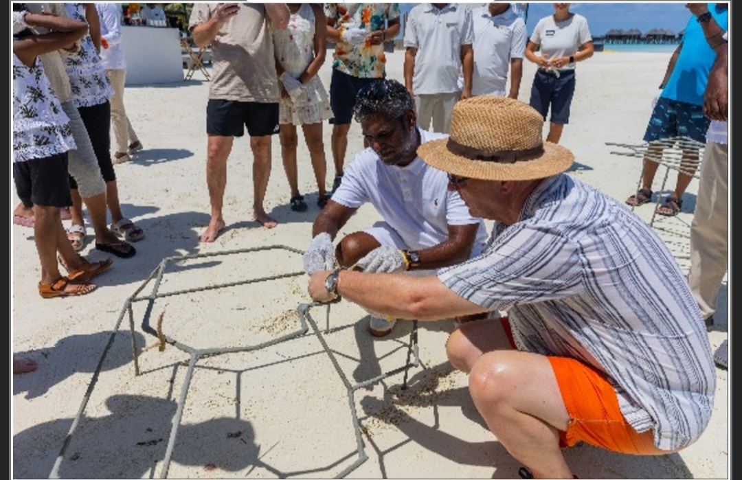 and placed in strategic positions in the resort’s coral garden, where conditions support natural growth and marine biodiversity. Guests are invited to adopt their chosen coral frame, take part in the planting process, and receive ongoing updates on its development, ،including photos shared every six months.